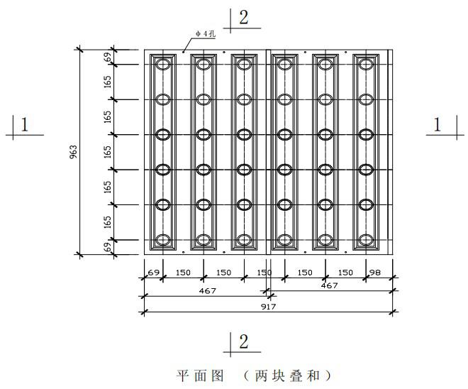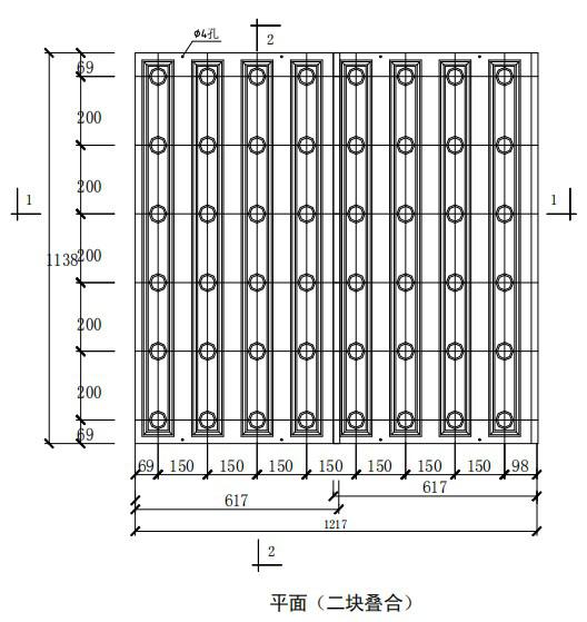注:孔距尺寸為標準尺寸,必要時可根據濾池設計要求,采用特殊模板確定。